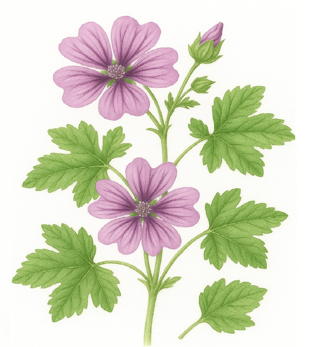 La mauve figure parmi les espèces pectorales classiques (avec guimauve, plantain, bouillon-blanc).