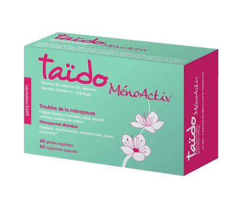 Taïdo MénoActiv est un complément alimentaire présenté comme une alternative aux traitements hormonaux substitutifs (THM) dans la prise en charge des symptômes de la ménopause.